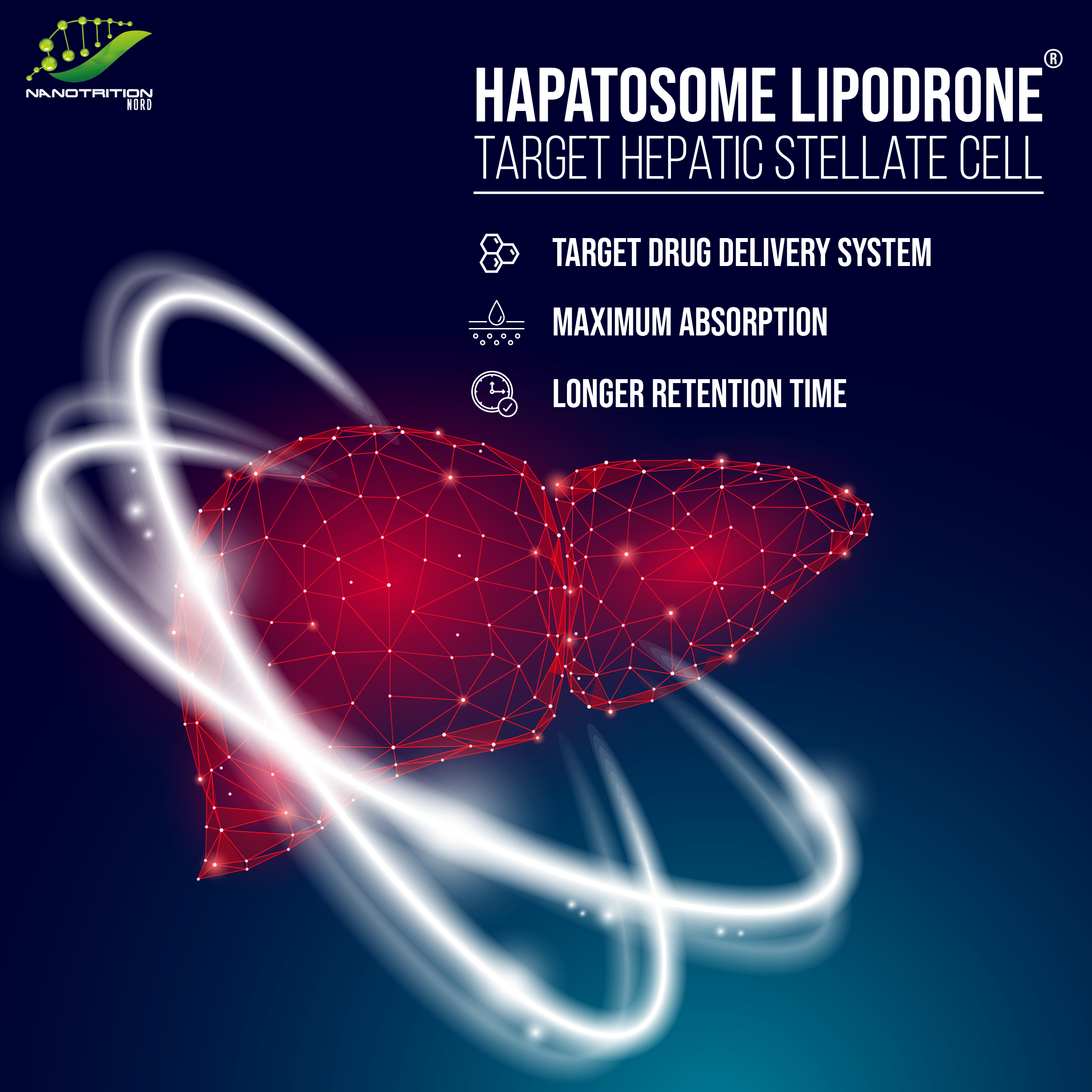 IntroductionHAPATOSOME LipoDRONE ® is a second order targeting system, which is designed for targeting Hepatic stellate cells (HSCs). HSCs involved in the progression of liver fibrosis whereas αvβ3 expressed on these cells.Expression of αvβ3 on HSCs allow LipoDRONE ® liposomes to target them. Thus, achieving maximum and highly selective target delivery system. StructureLipoDRONE ® liposomes are marked with specific cyclic RGD peptides, to target HSCs, and showing diameter less than 200 nm. Mechanism of actionIntegrin αvβ3 expression is elevated in activated HSCs. In order to deliver an HSC specific peptides RGD with high affinity to αvβ3, we developed sterically stable liposome.HSCs preferentially internalized the RGD-guided liposomes. Features and benefits Achieving maximum and highly selective target delivery system.Drug targeting efficiency is 1.30 ± 0.04 time higher than conventional forms.